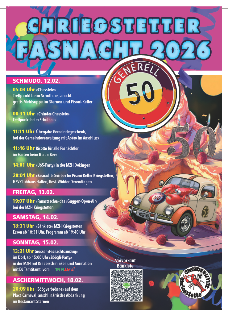 Seid rechtzeitig dabei und geniesst eine stimmungsvolle Fasnacht mit Guggemusik!