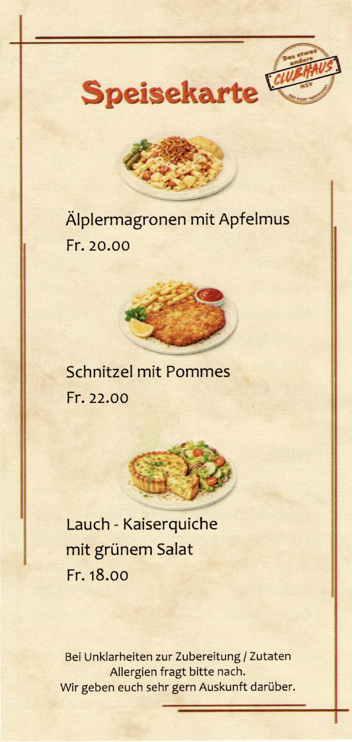 Zur Fasnacht gibt es bei uns eine spezielle Speisekarte: